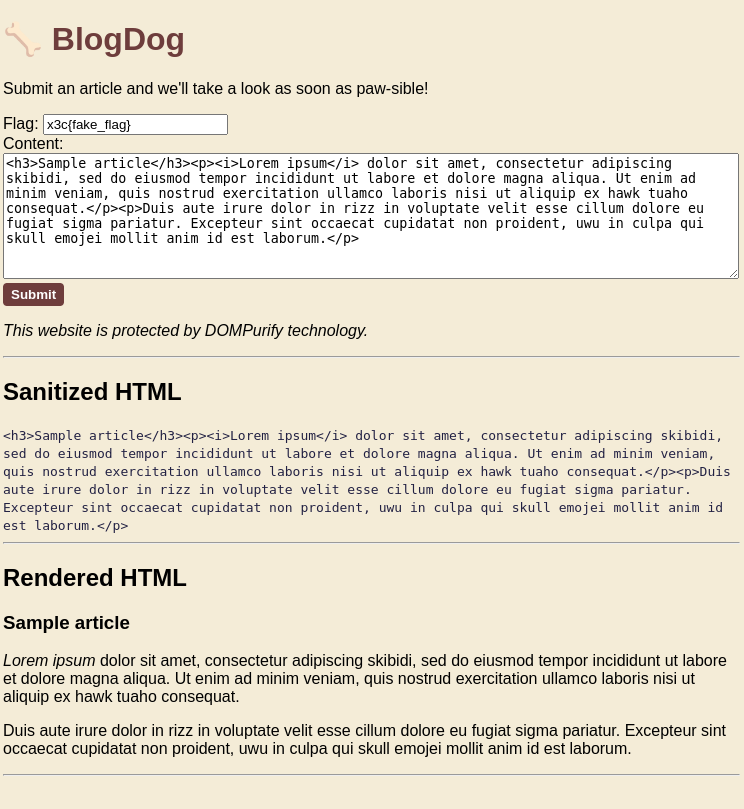 内容を送ると、DOMPurifyでサニタイズして表示してくれるサイト。Contentのフォームに値を入れるとレンダリングしてくれる他、以下のようにクエリパラメータを利用しても値を指定できる。