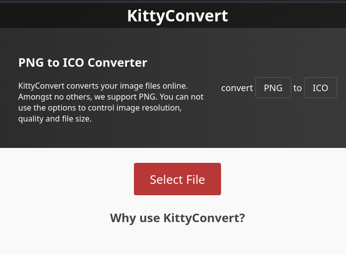 画像をICOファイルに変換してくれるサイト。実行結果は/uploadsディレクトリにアップロードされる。コードはPHPで動いているので、どうにかして.phpファイルをアップロードしてRCEを行うことが最終目的。